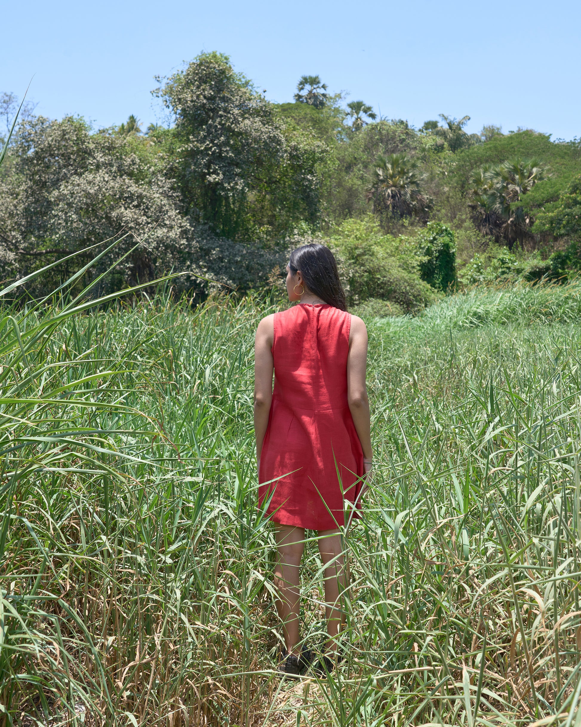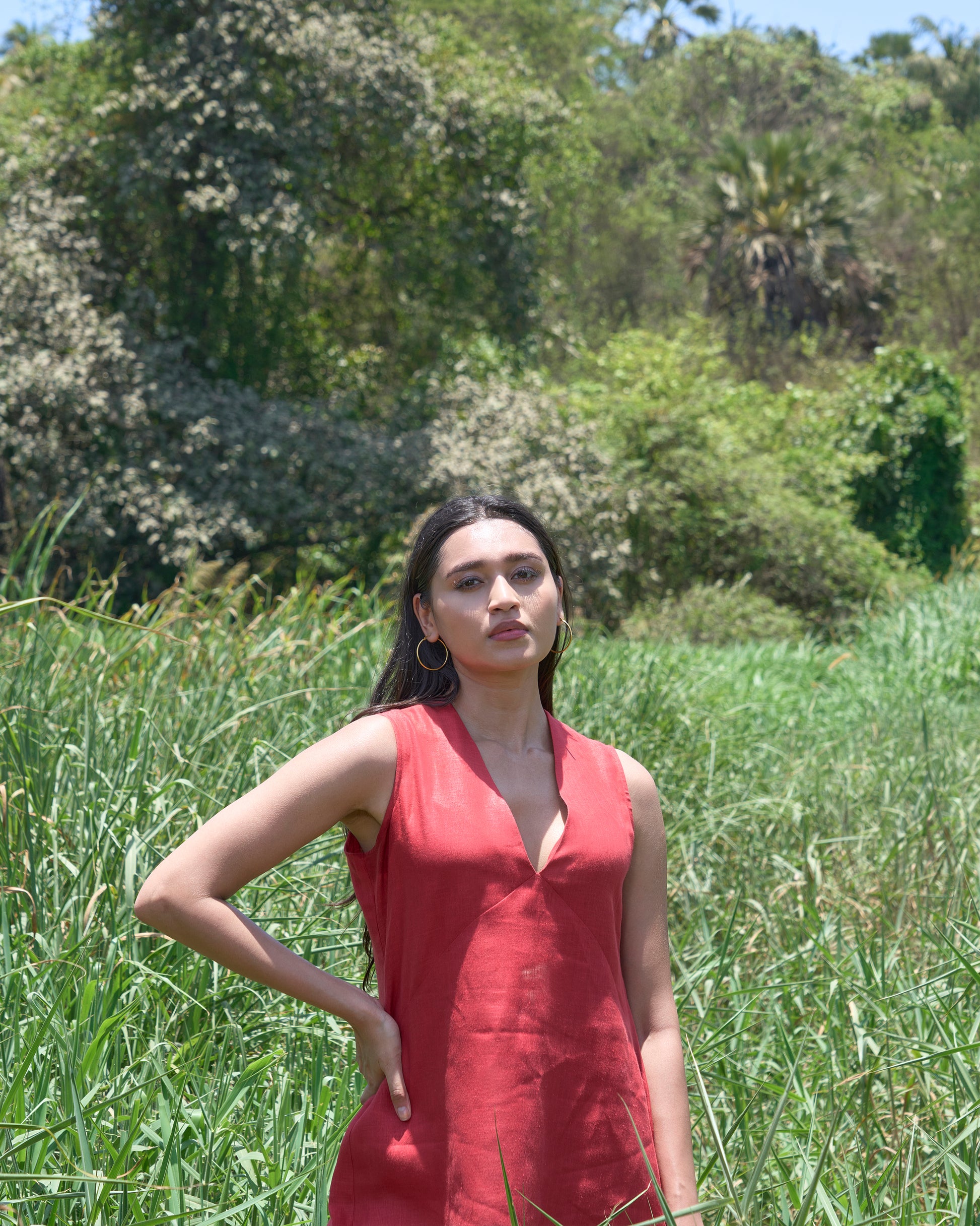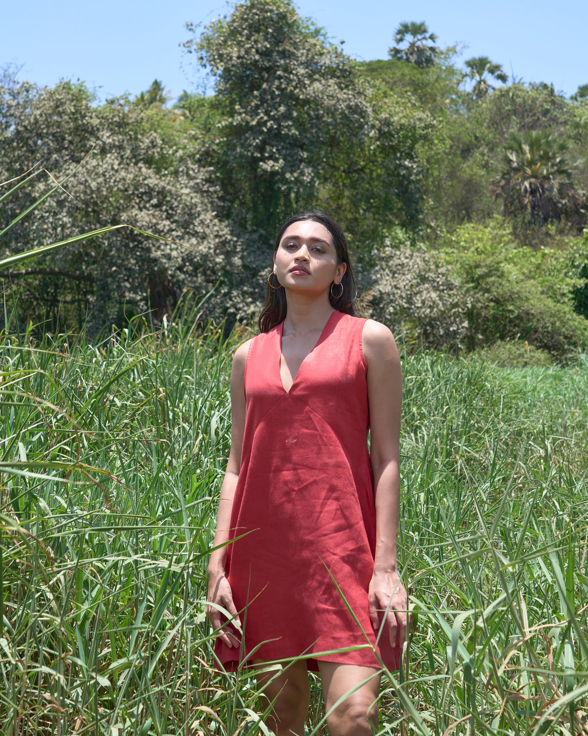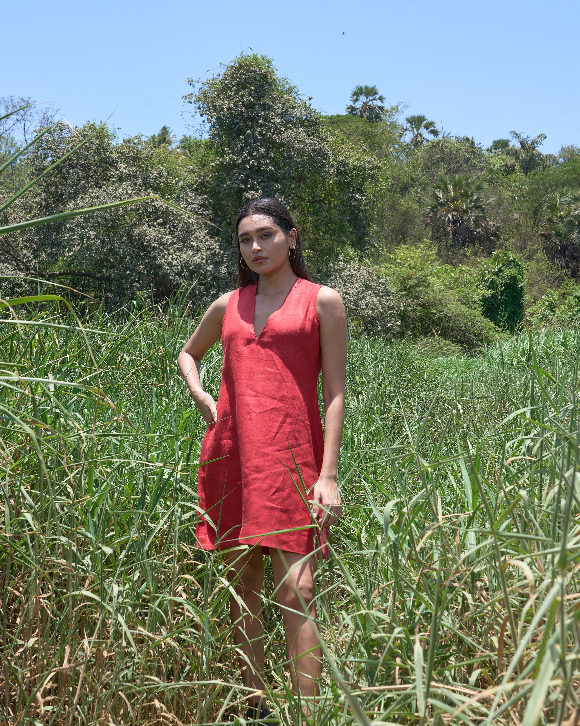 The Terracotta Mini Dress features a sleek, sleeveless design with a flattering V-neckline, making it a versatile choice for various occasions. Its tailored fit enhances your silhouette, while the breathable hemp fabric ensures comfort throughout the day. The vibrant Terracotta colour adds a touch of natural warmth and elegance, making this dress a standout piece in any wardrobe.